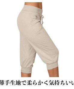 レディース スウェット 薄手 七分丈 ハイウエスト ゆったり ひざ丈 クロップド スポーツ ルームウェア 涼しい ウエストゴム 7分丈 脚長 美脚