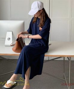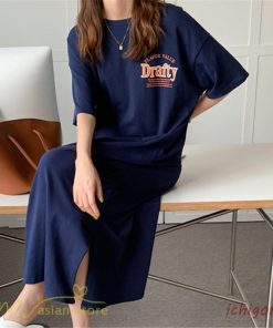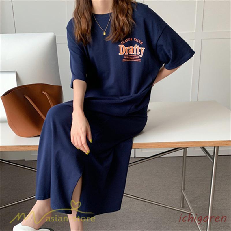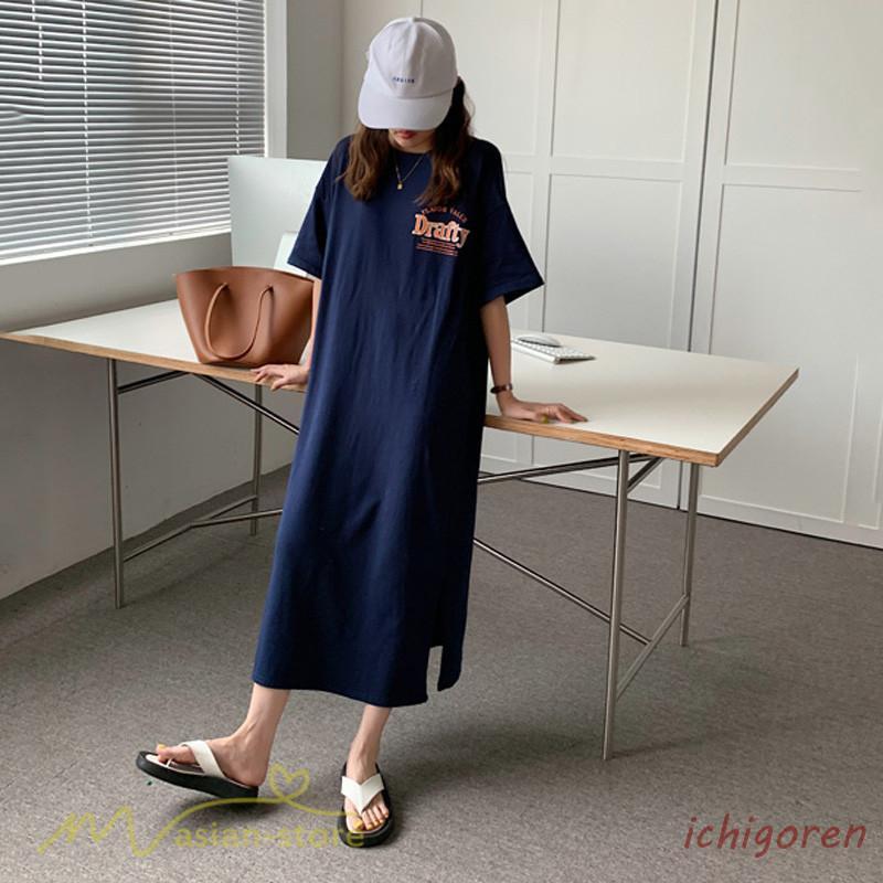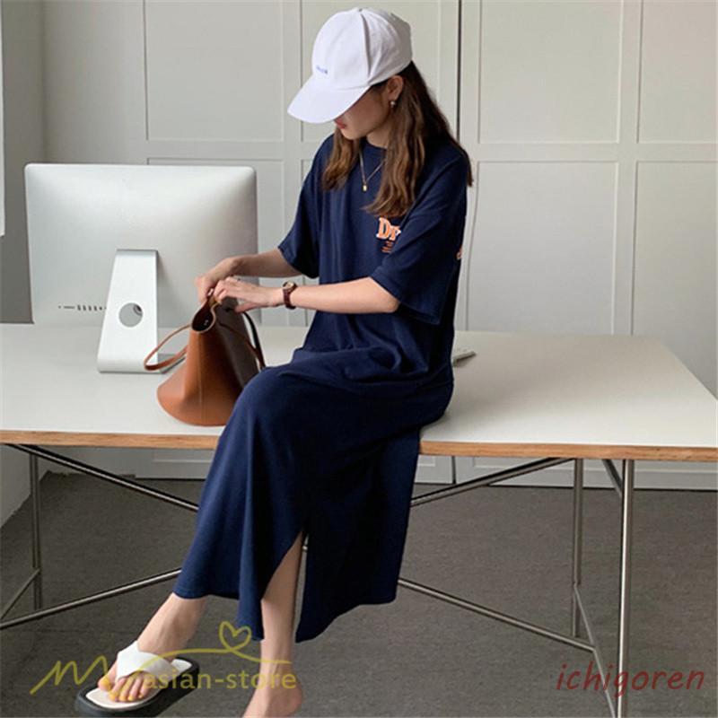 ワンピース Tシャツ レディース Tシャツワンピース 夏 ロングTシャツ ミモレ丈 裾口スリット カジュアル 5分袖 体型カバー 着痩せ カットソー 大きいサイズ