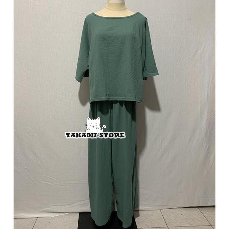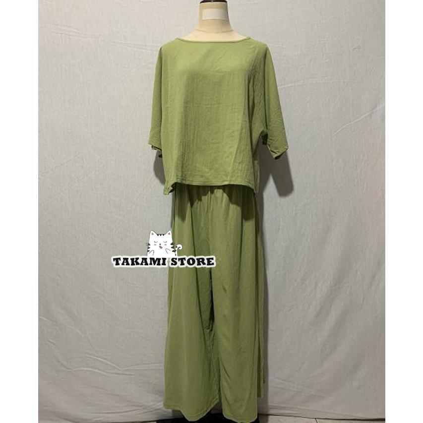 上下セット セットアップ リネン レディース 上下 ルームウェア 半袖 薄手 Tシャツ パンツ 部屋着 ワイトパンツ