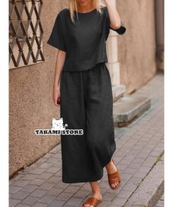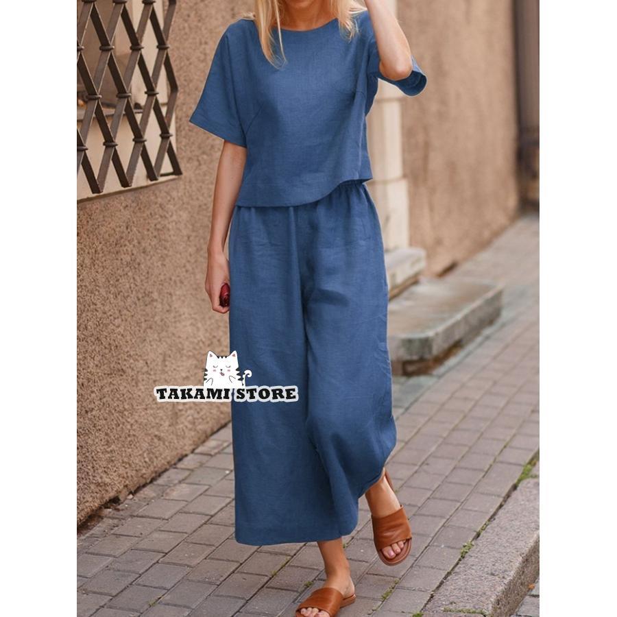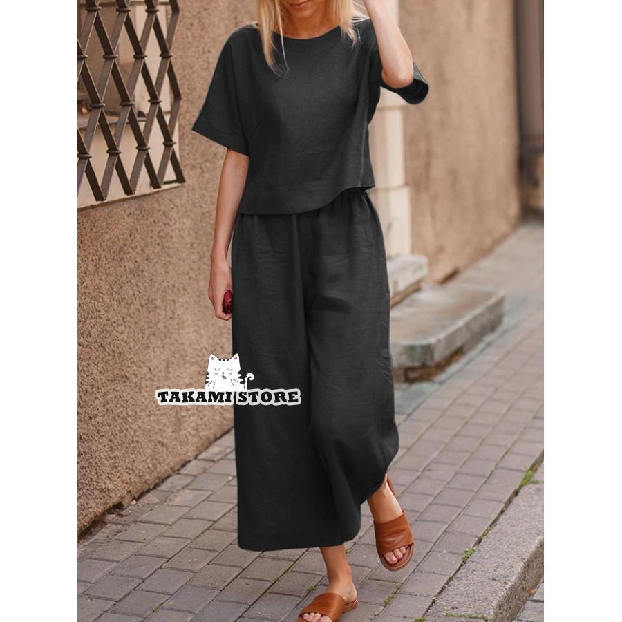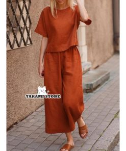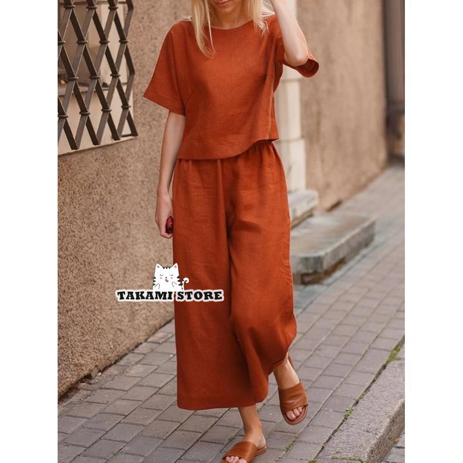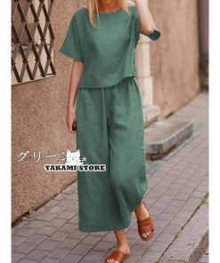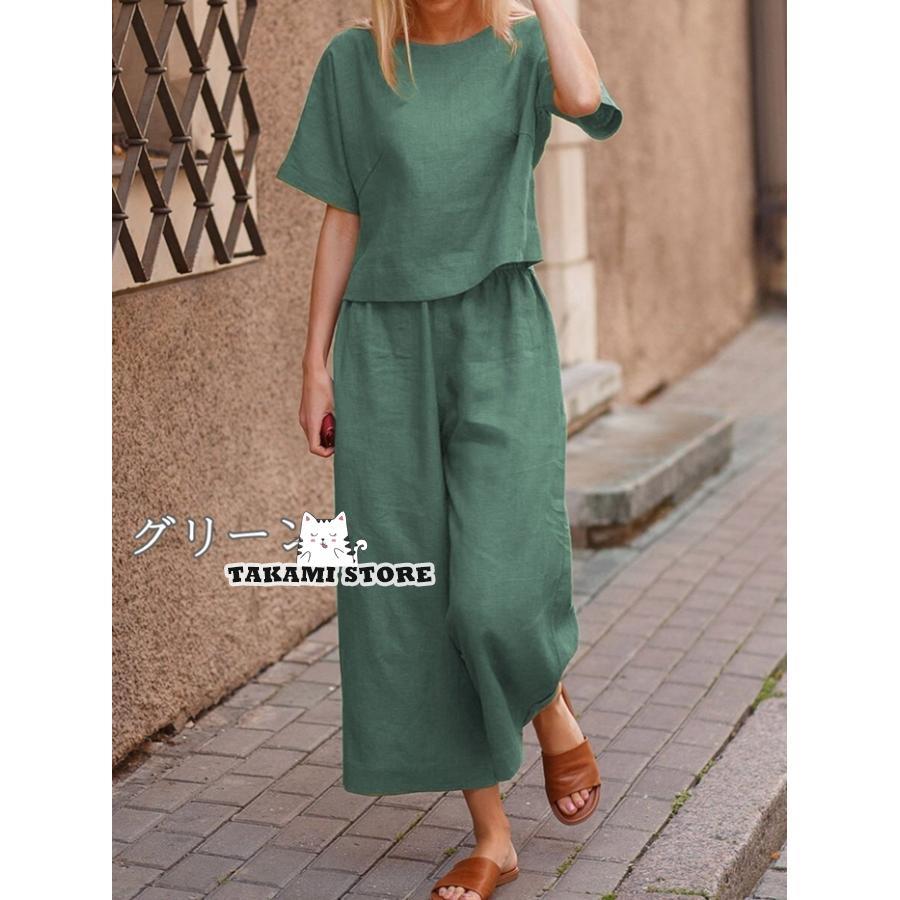 上下セット セットアップ リネン レディース 上下 ルームウェア 半袖 薄手 Tシャツ パンツ 部屋着 ワイトパンツ レディース
