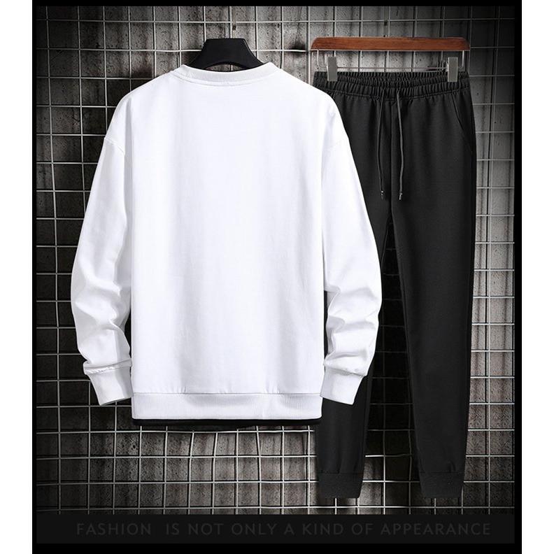 上下セット メンズ セットアップ 長袖 トレーナー Tシャツ カットソー ラウンドネック トップス ロングパンツ スウェットパンツ ウエストゴム ボトムス カジュアル おしゃれ かっこいい 重ね着風 通勤 通学 部屋着 運動着 ファッション 秋新作 新作