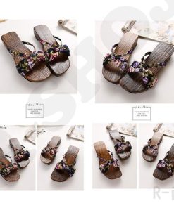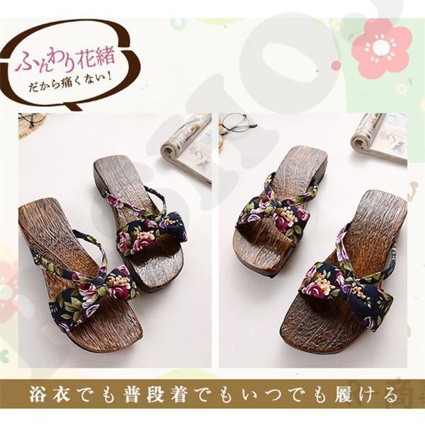 下駄 レディース サンダル 浴衣用下駄 花柄 ローヒール 女性用 厚底 スリッパ 夏祭り 滑り止め 痛くない 可愛い アウトドア