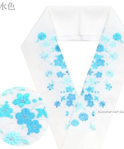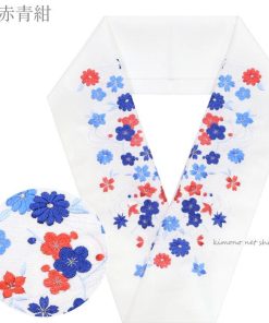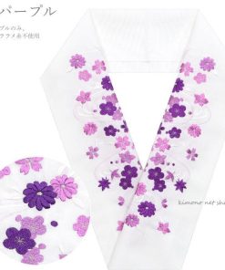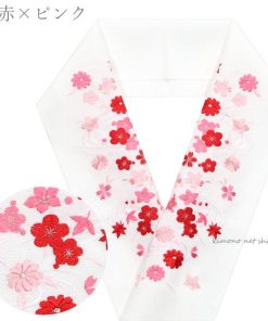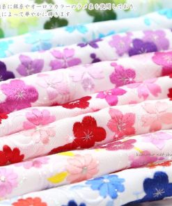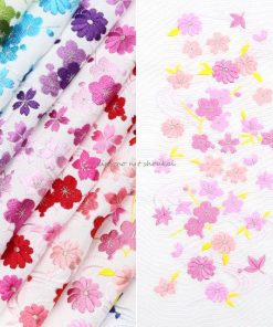 白地に華やかな桜・梅・菊・桔梗の刺繍を施した豪華なデザイン