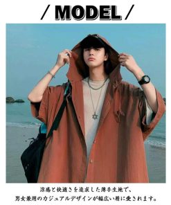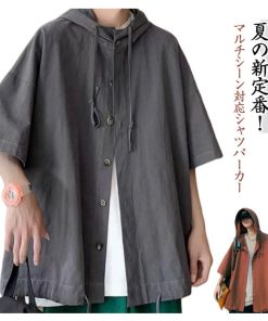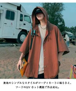 半袖 パーカー 男女兼用 前開き 無地パーカー はおり トップス 夏 サマーパーカー フード付き UVカット 薄手 半袖パーカー