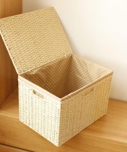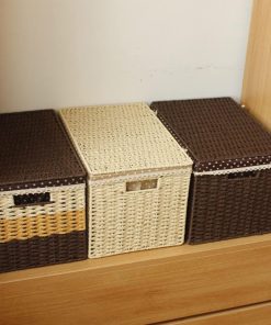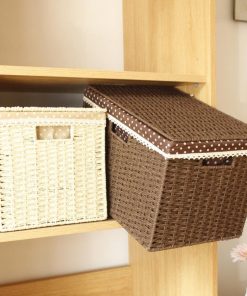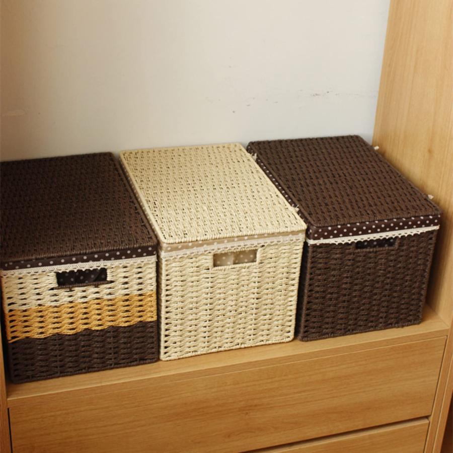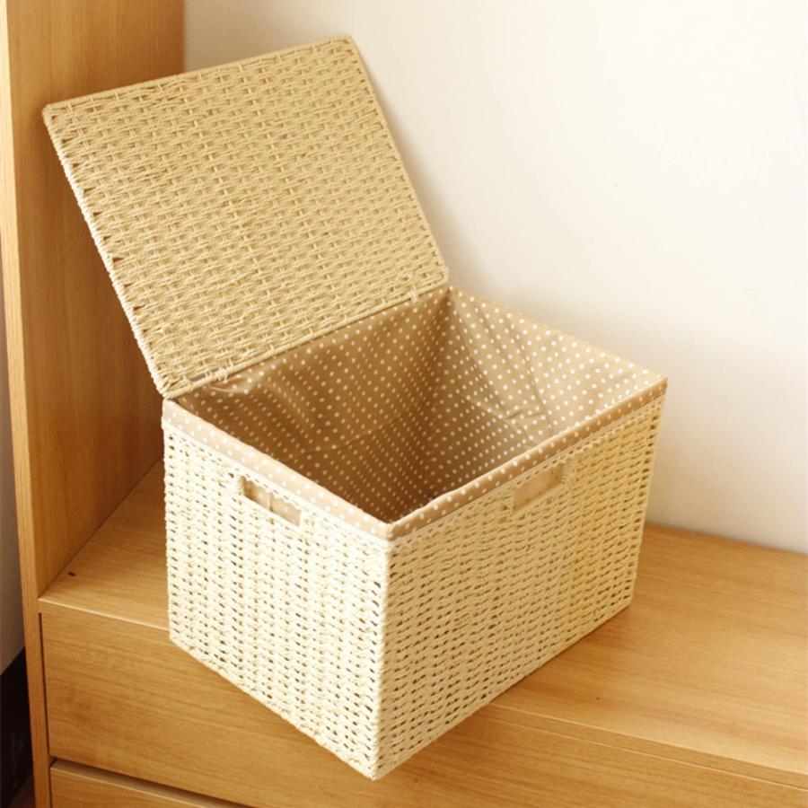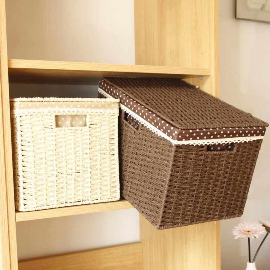 収納かご バスケット スタイル1 蓋付き ラタンバスケット 手編み 小物入れ 果物 フルーツバスケット おしゃれ 卓上収納 かご 洗える 収納バスケット 田園風 和