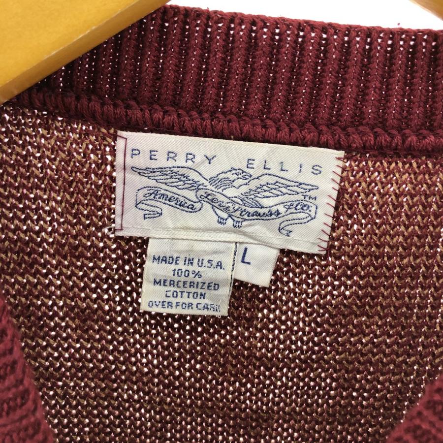 古着 90年代 ペリーエリス PERRY ELLIS クレイジーパターン 総柄 コットンニットセーター USA製 メンズL相当 ヴィンテージ /eaa463226 【SS2509_30】