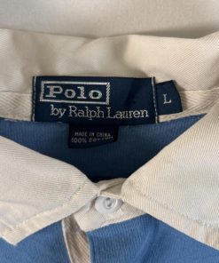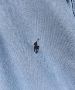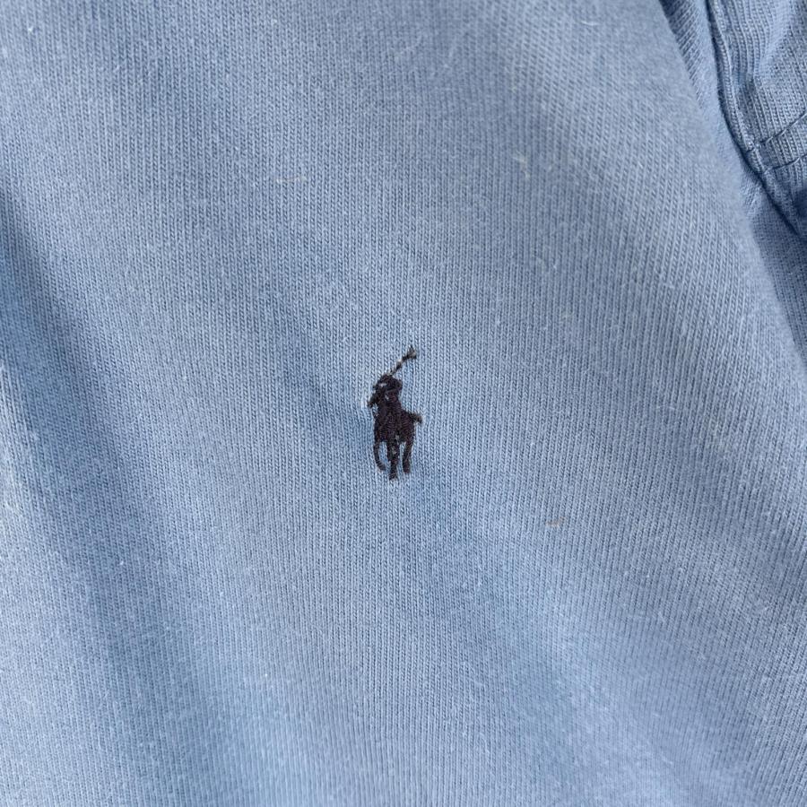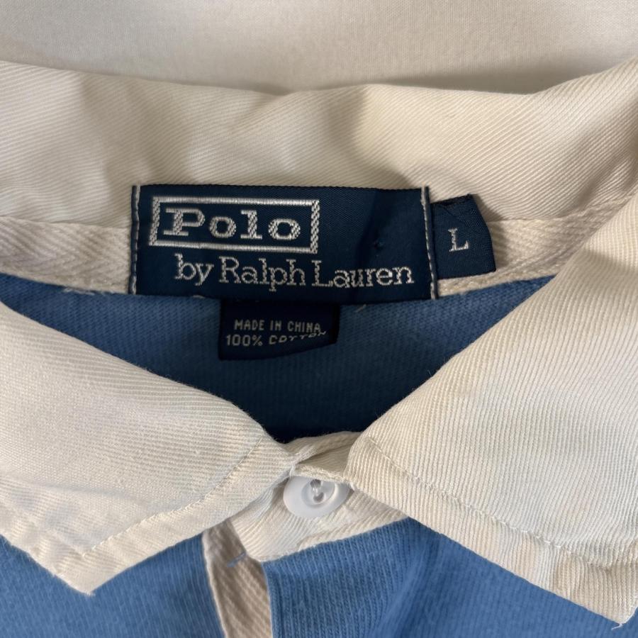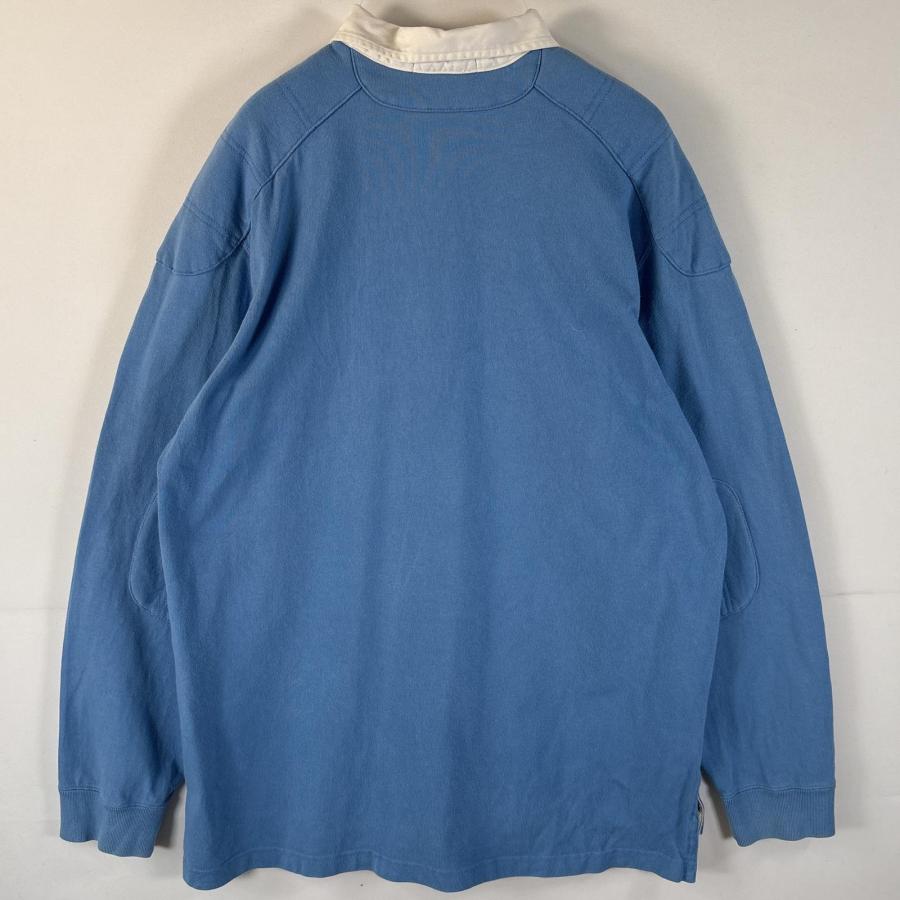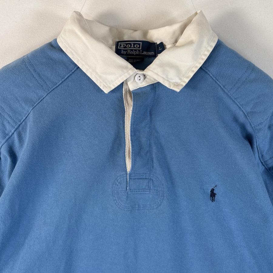 古着 90’s/90年代 ポロバイラルフローレン Polo by Ralph Lauren 長袖 ラガーシャツ ワンポイントロゴ刺繍 エルボーパッチ L 水色 メンズ
