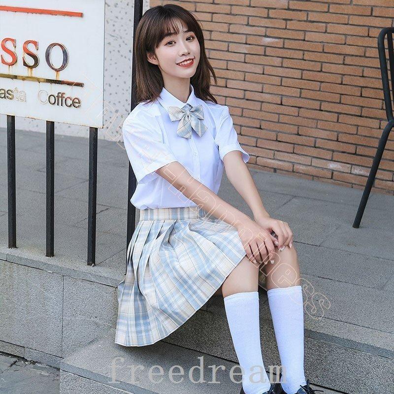 学生服JK制服上下セットコスプレ高校生セーラー服上着+スカート+蝶結びレディースドレス半袖フレア愛い