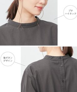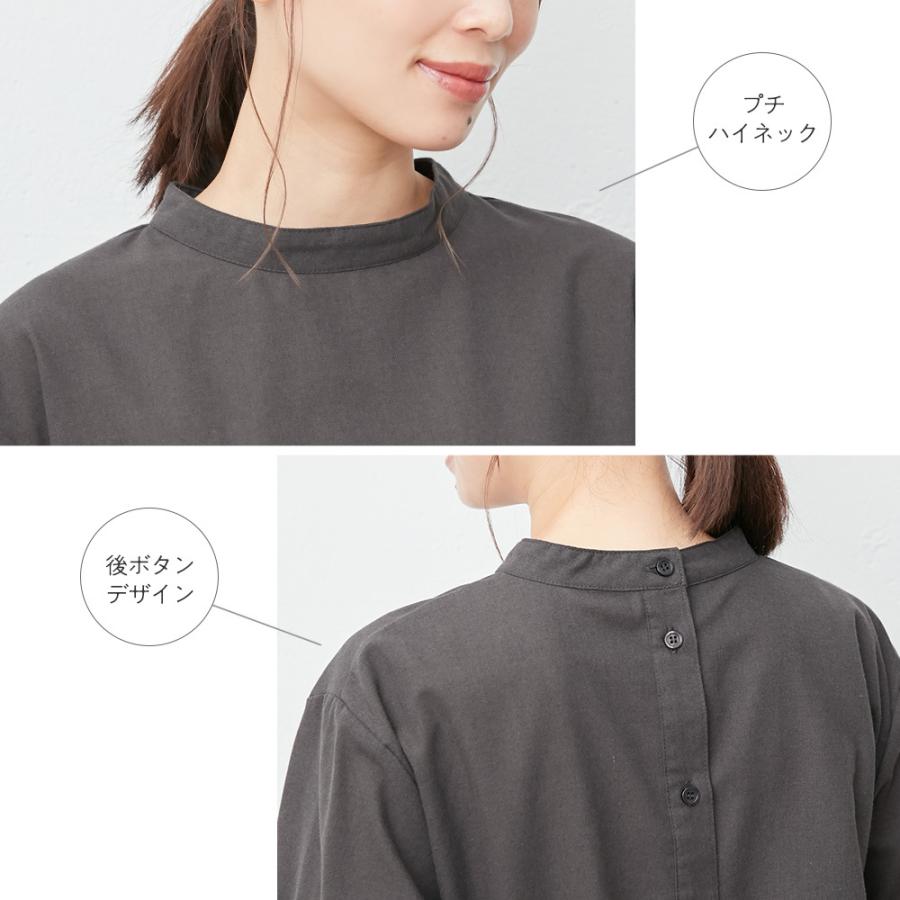 後ボタンデザインハイネックチュニック