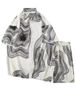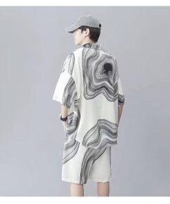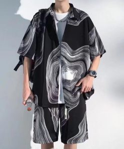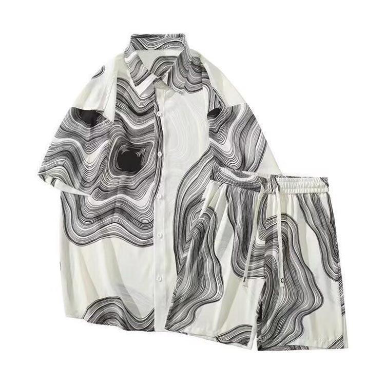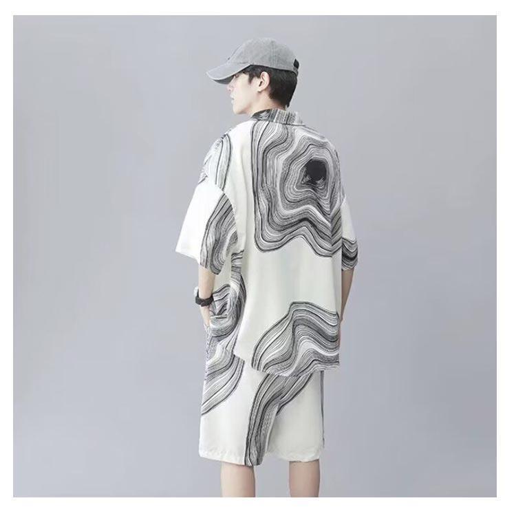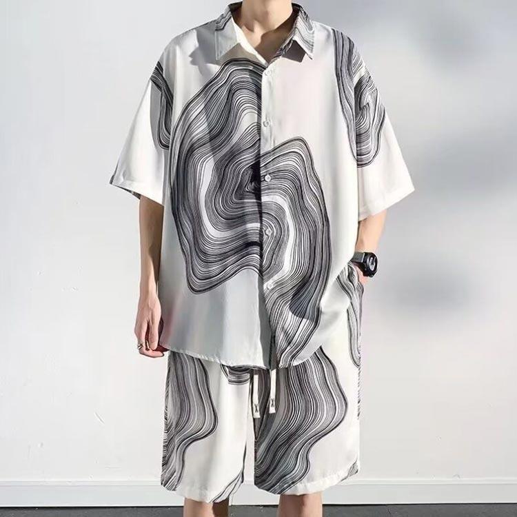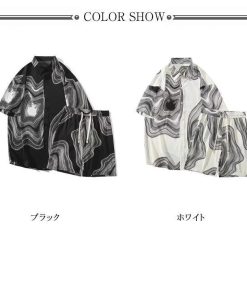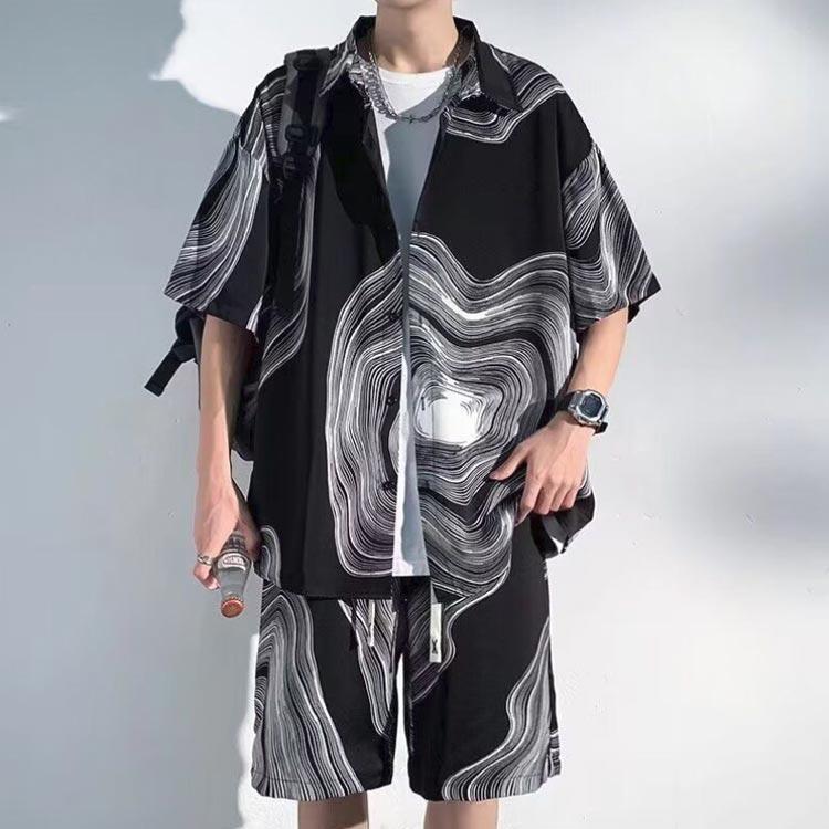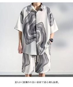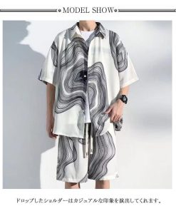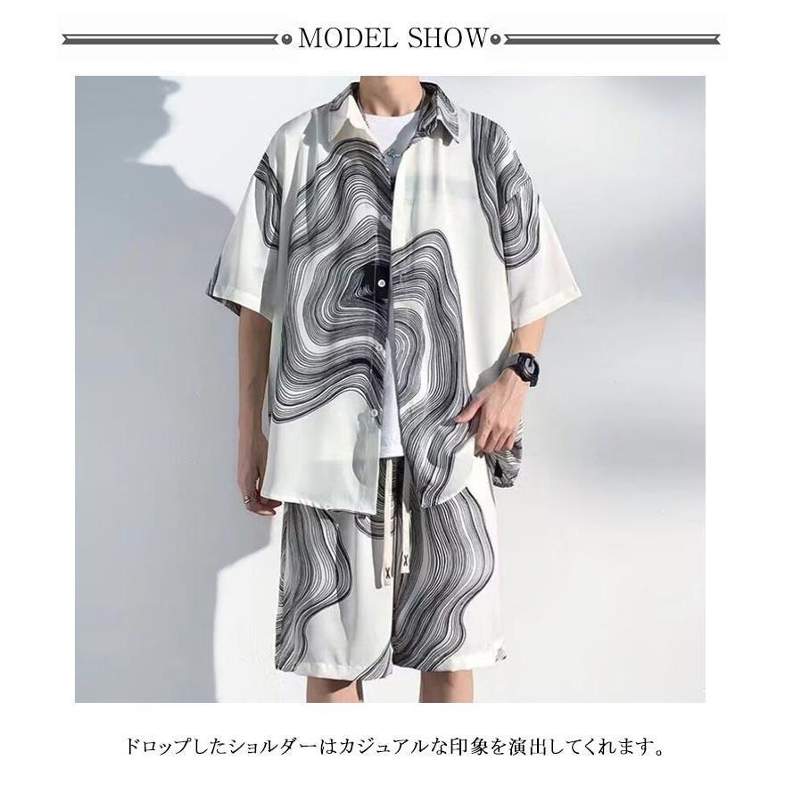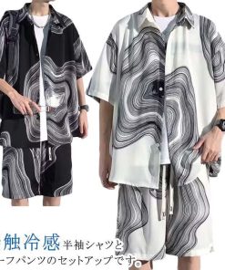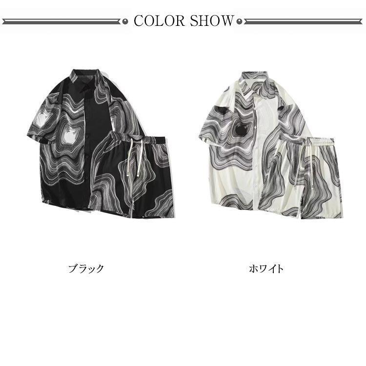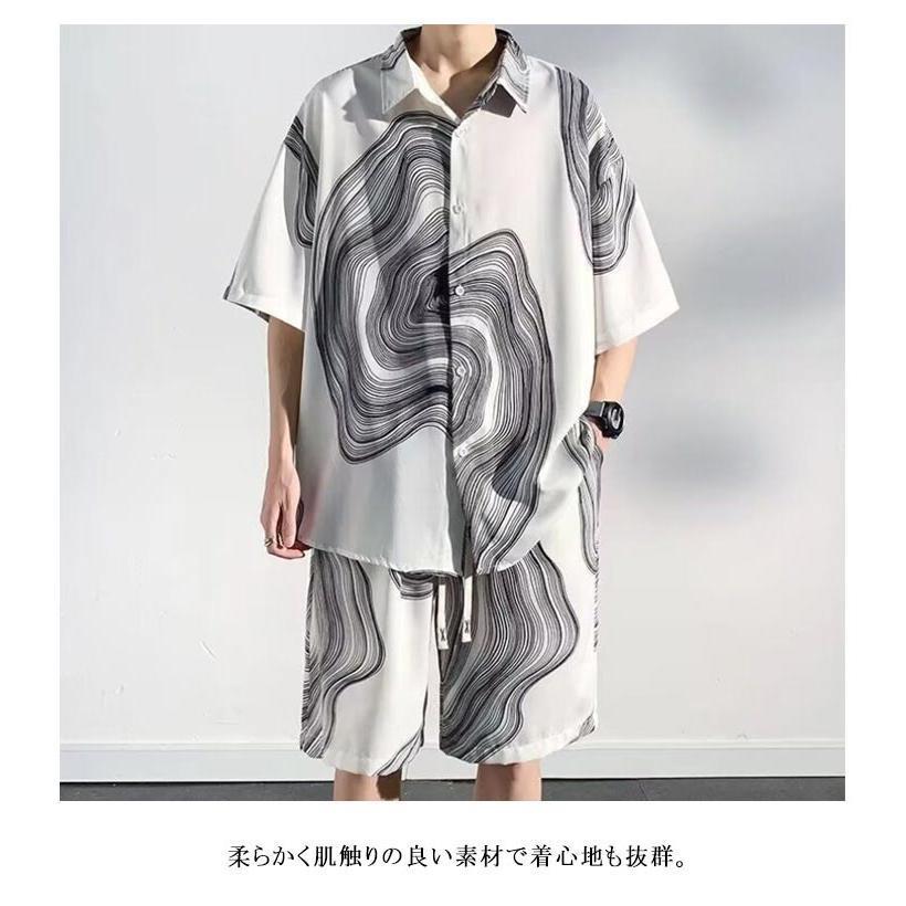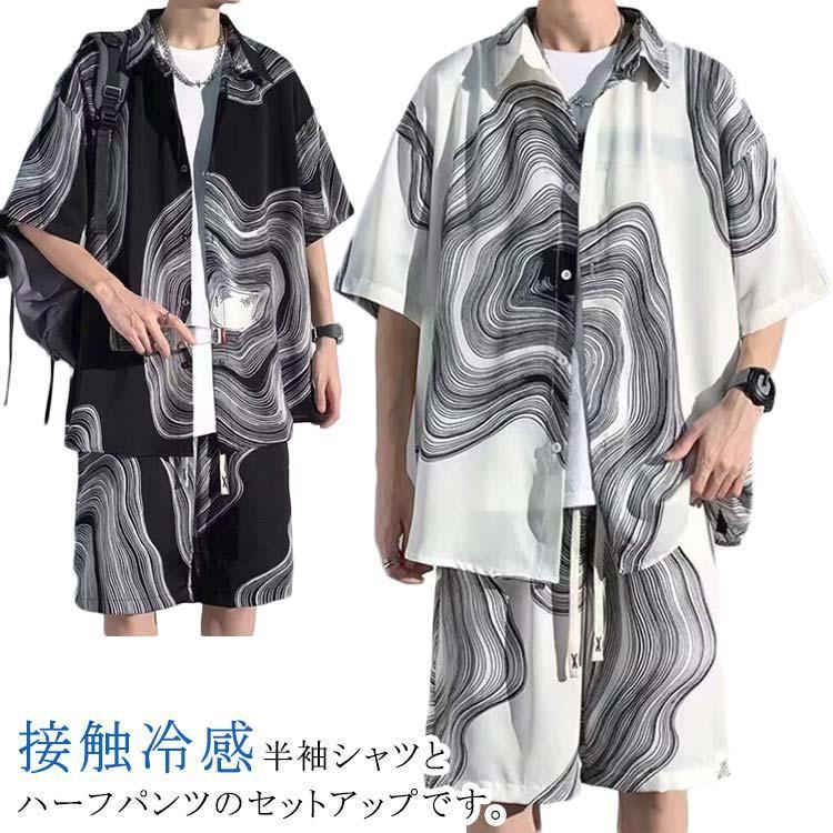 接触冷感 アロハシャツ セットアップ メンズ 上下セット 半袖シャツ ショートパンツ 2点セット 絞り染め 薄手 涼しい Tシャツ ハーフパンツ 短パ