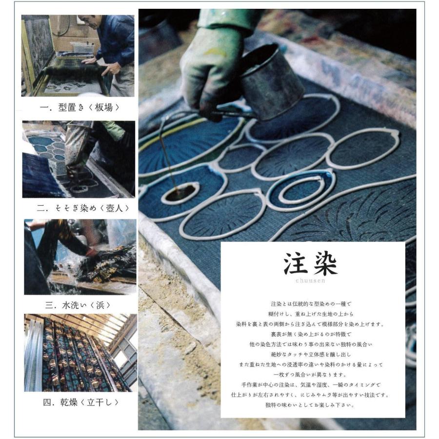 染料を注ぎ、模様部分を染め上げる伝統的な型染めの一種です。