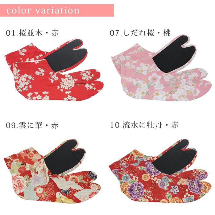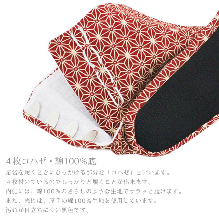 柄足袋 4枚コハゼ 日本製の和柄生地使用 底:黒色 22.5/23.0/23.5/24.0/24.5/25.0/25.5cm