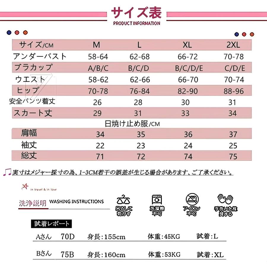 実用的な機能 柔らかく、通気な生地を使用し、しっかりだけでなく、伸縮性も抜群です。トップス付きの水着で、夏の日差しを避けて日焼け対策がばっちり!