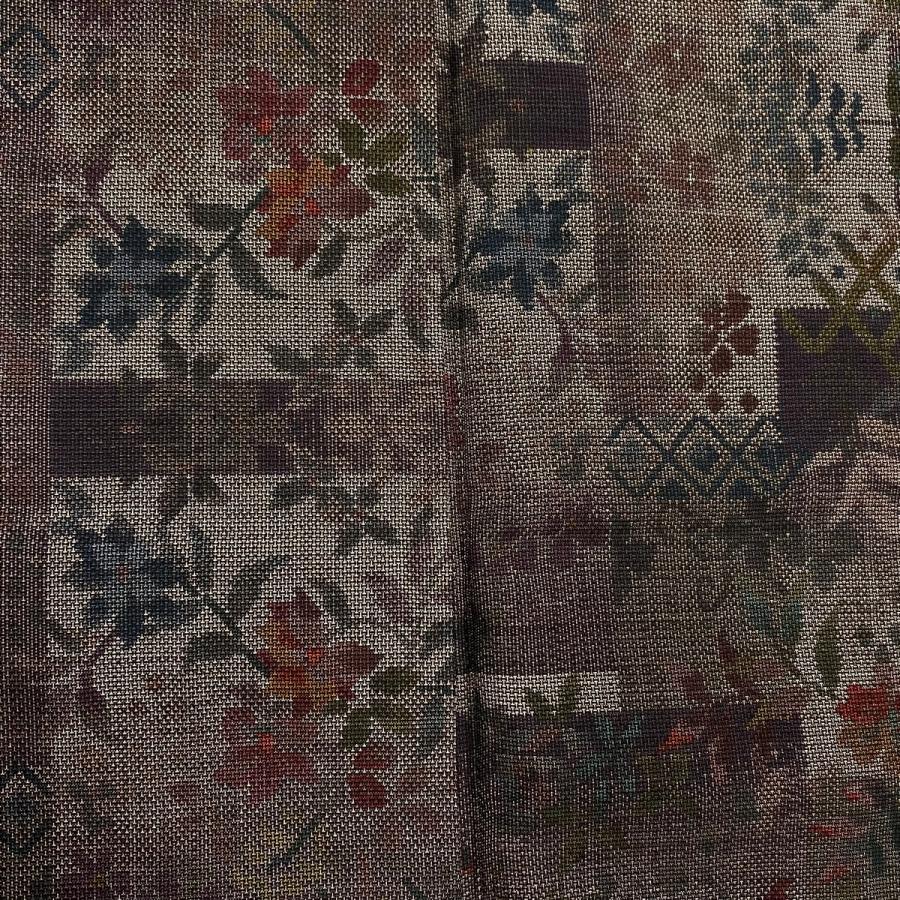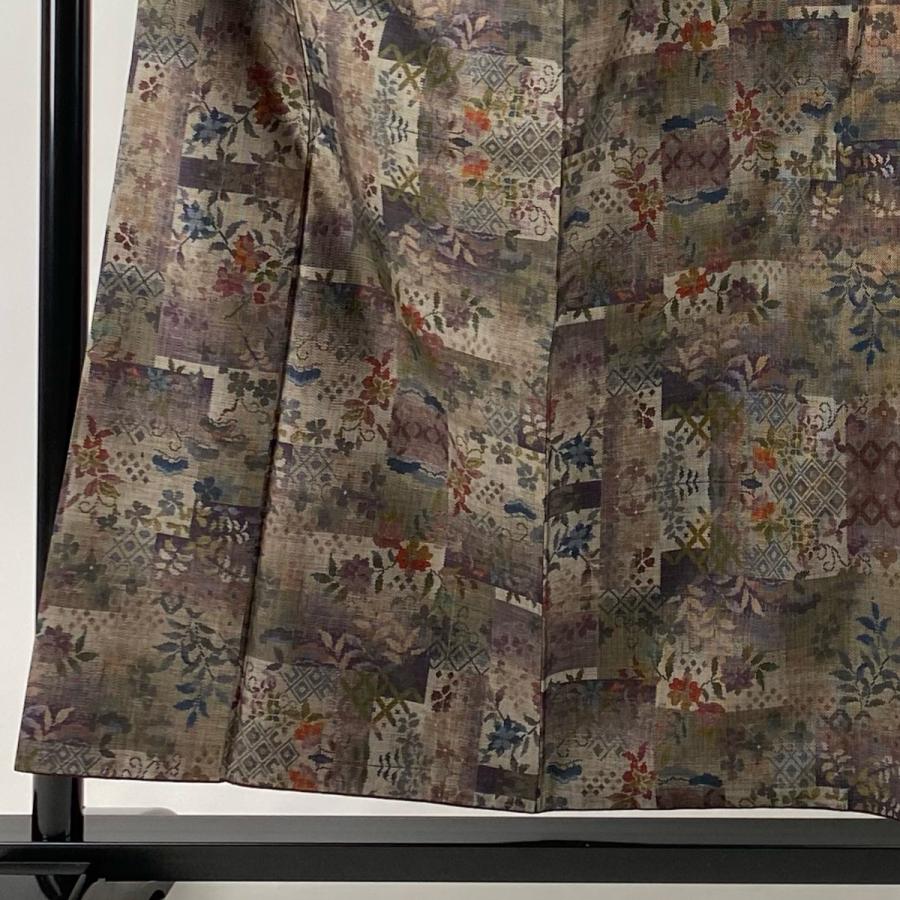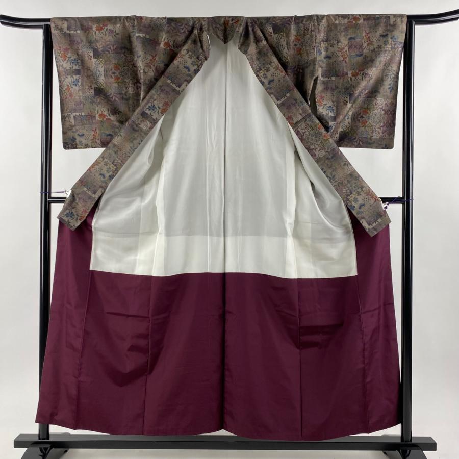 紬 身丈156.5cm 裄丈63.5cm S 袷 ますいわ屋 草花 幾何学模様 茶紫 正絹 秀品 中古