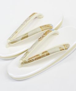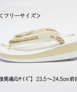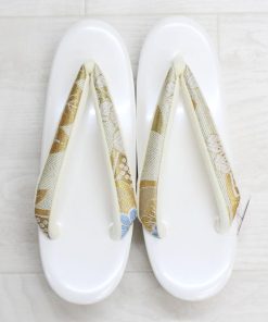 オフホワイトの草履台に華やかな柄の鼻緒がハレの日にふさわしいお品です。