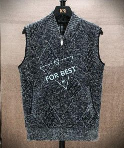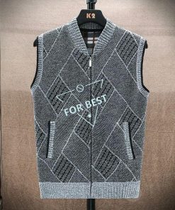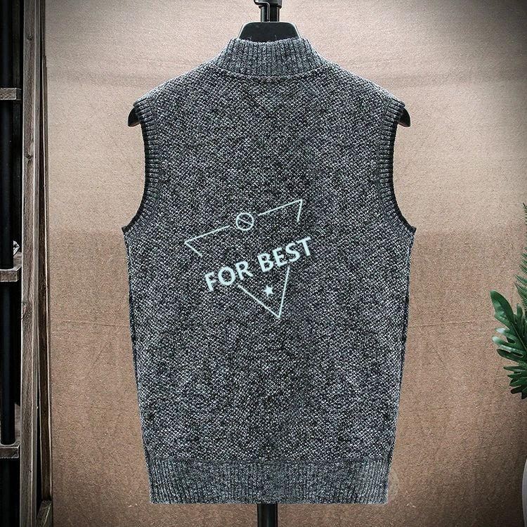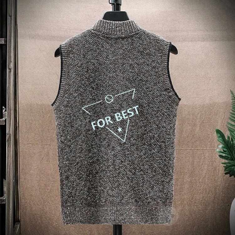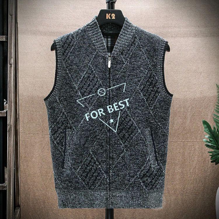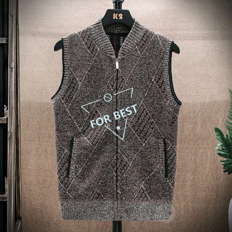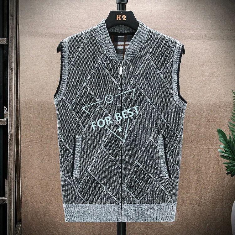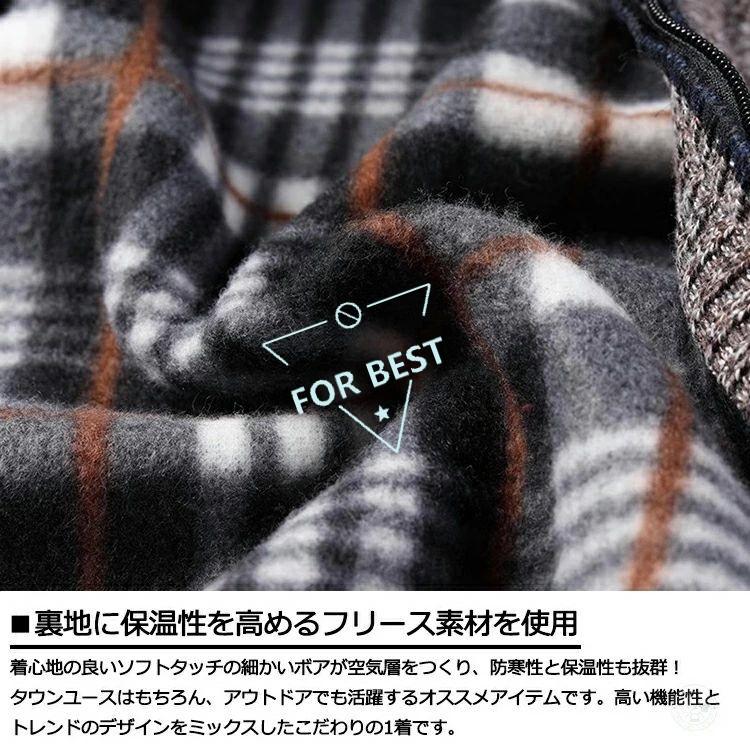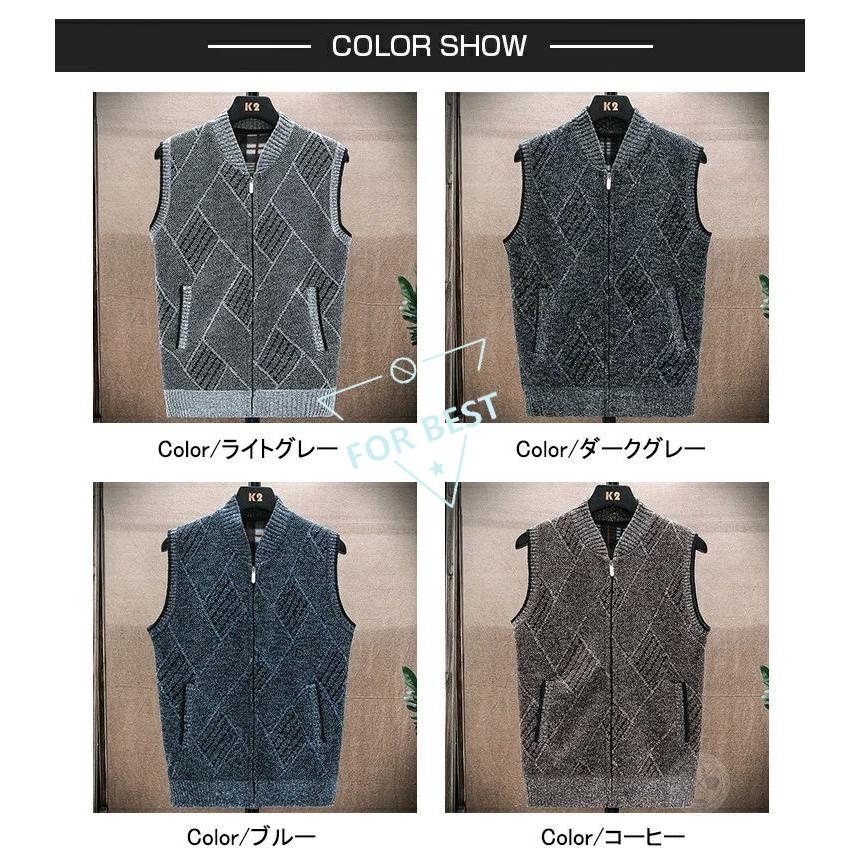 裏ボア ニット ベスト メンズ カジュアル Vネック 前開きベスト ゴルフベスト ゴルフウェア ビジネス 防寒着 チェック柄 トップス ジップアップ ジャケット ブル