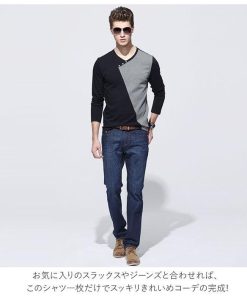 長袖 tシャツ メンズ 綿100 通販 長袖Tシャツ 長袖シャツ Tシャツ ロンt おしゃれ ヘンリーネック vネック 薄手 シンプル 綿100% 大きいサイズ 黒 ブラック