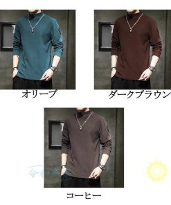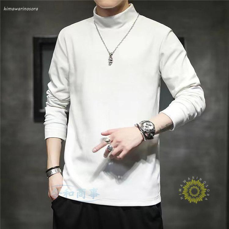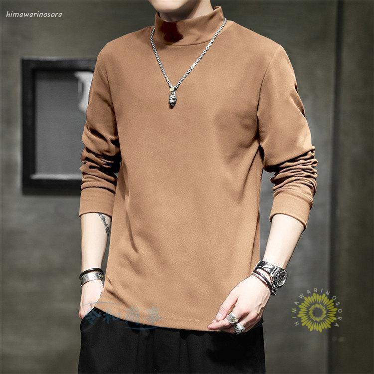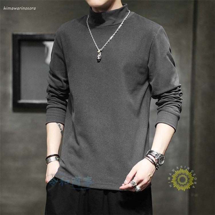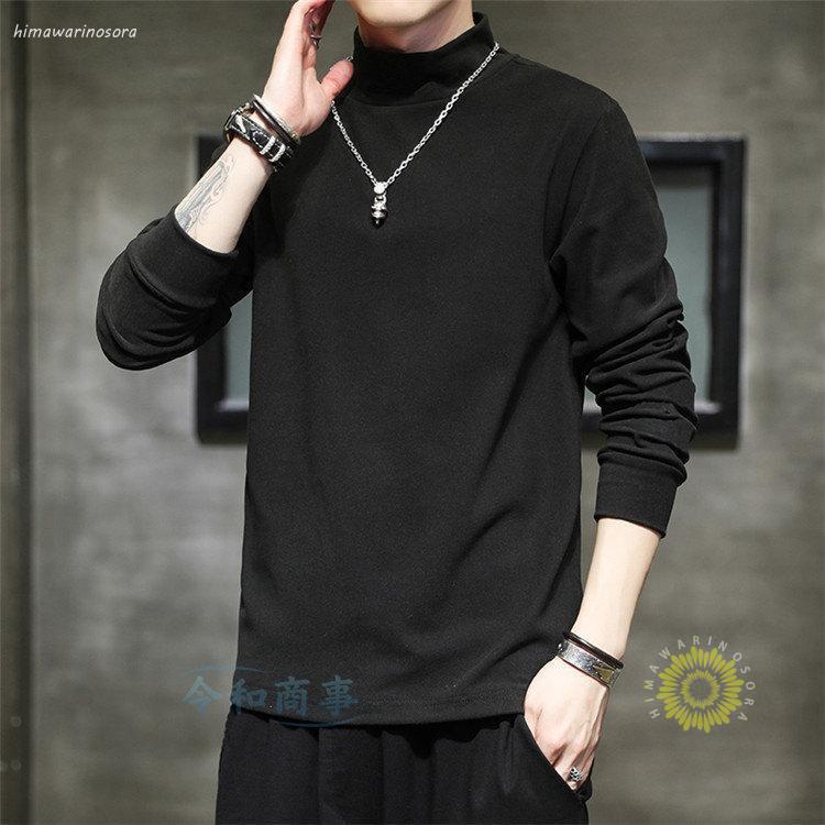 長袖tシャツ メンズ ロングtシャツ ストレッチ 無地 おしゃれ ハイネック ロンt 大きいサイズ 春服