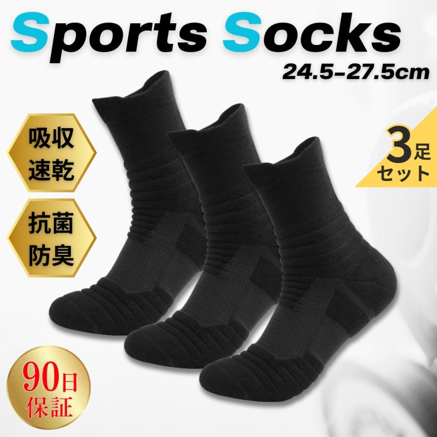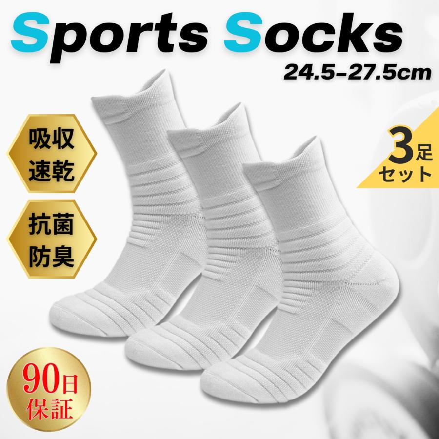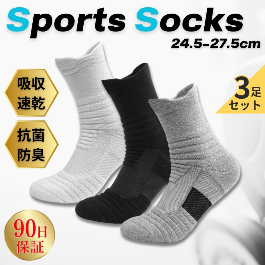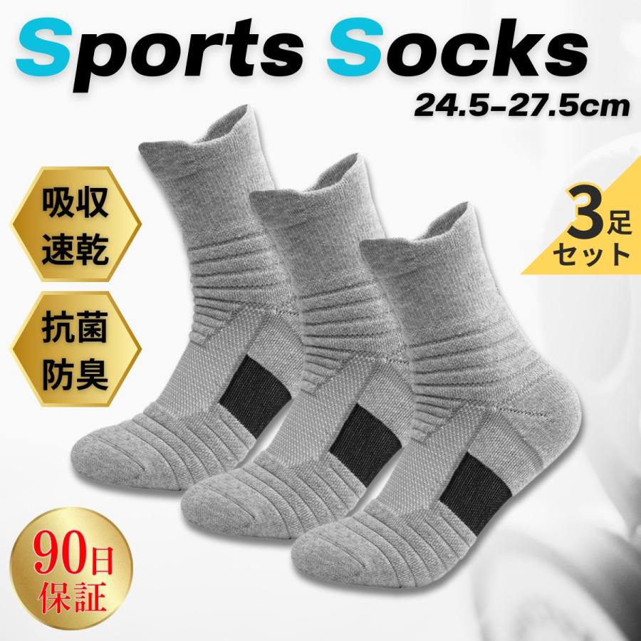 靴下 メンズ スポーツ 厚手 スポーツソックス 3足 セット ソックス クルーソックス ビジネス 黒 白 灰 ブラック ホワイト グレー