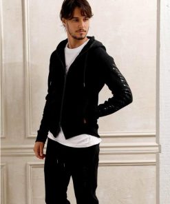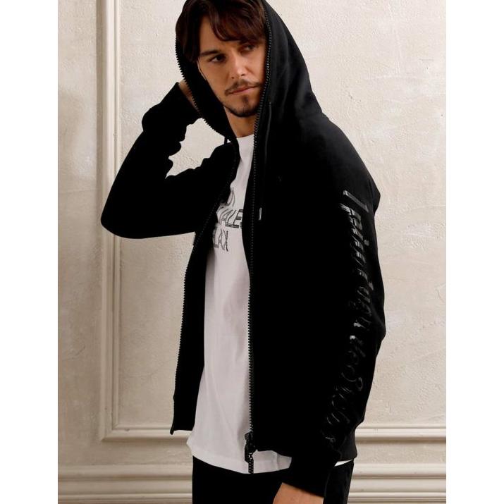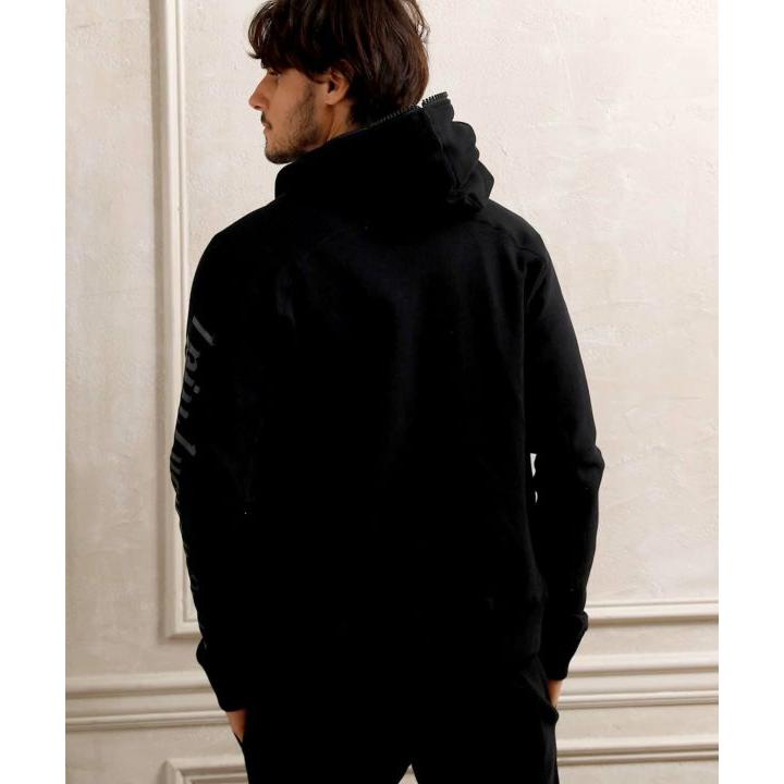 フロントからフードまでぐるりと囲んだファスナーにラインストーンを配置し、揺れる度にラグジュアリーな輝きが目を惹きます。