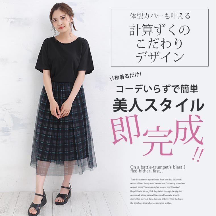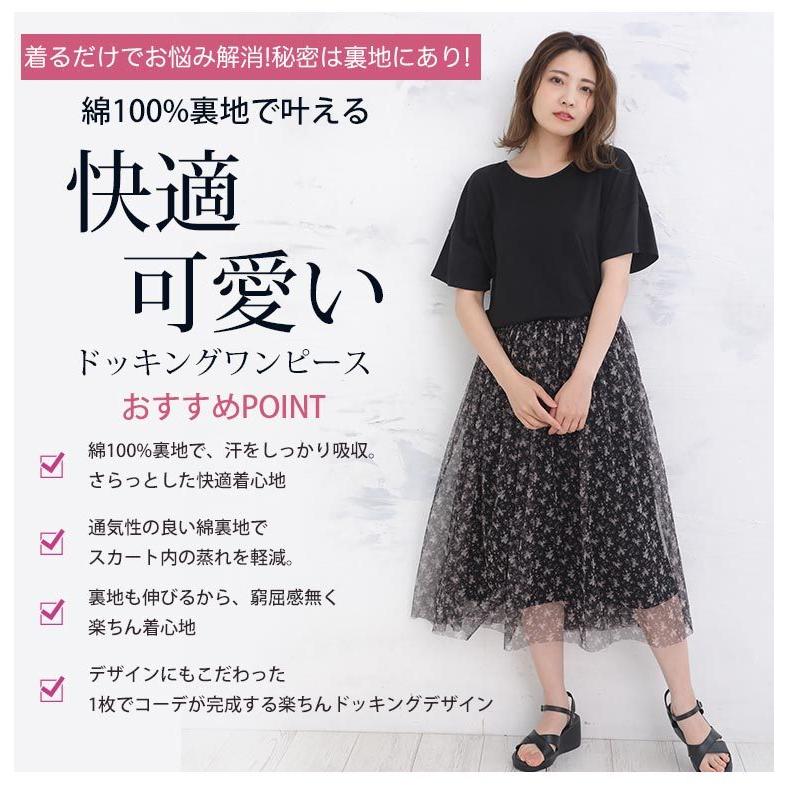 快適の裏地で快適!チュール重ねドッキングワンピース