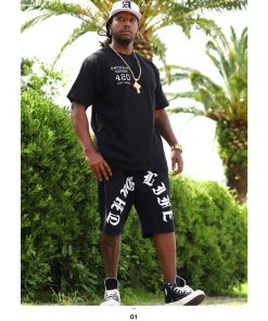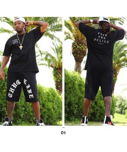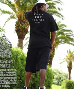 Tシャツとスウェットハーフパンツの上下セット。トップスには『Fuck the Police/ファック・ザ・ポリス』、ボトムスには『THUG LIFE』をドロップ。全2色。
