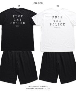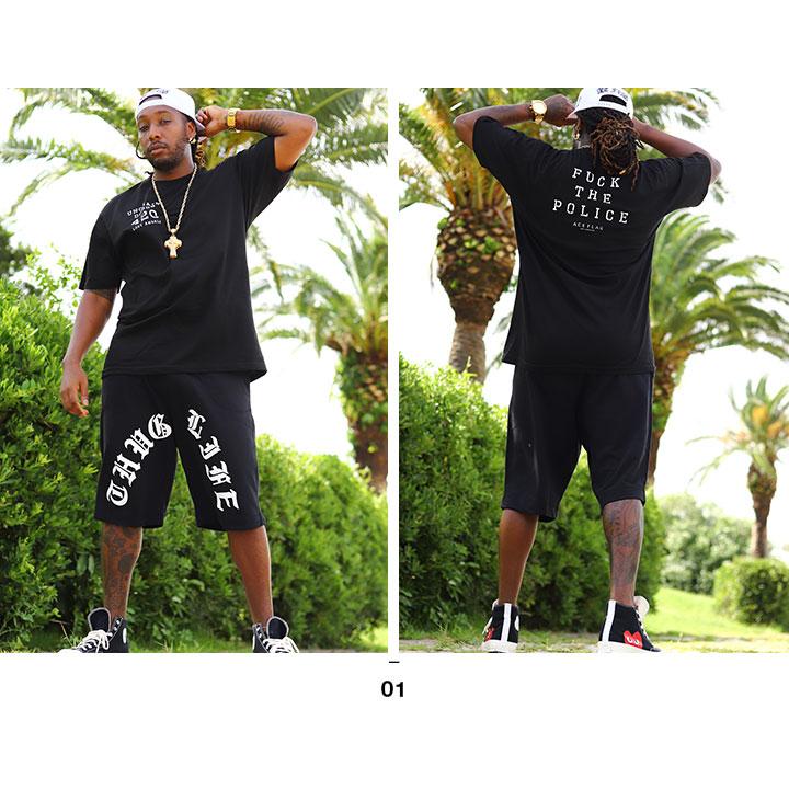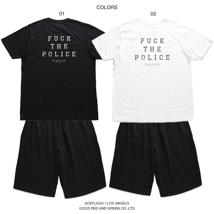ACEFLAG ACE FLAG 上下セット 半袖 ブランド Tシャツ ハーフパンツ 大きいサイズ エースフラッグ セットアップ Fuck the Police ファック・ザ・ポリス b系
