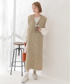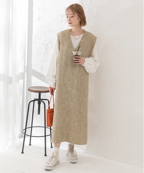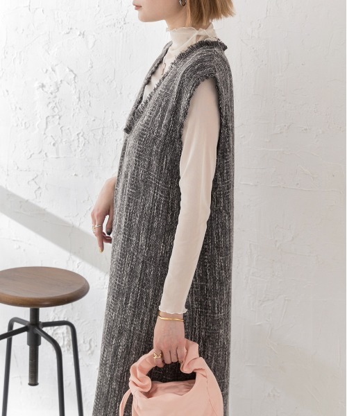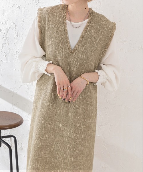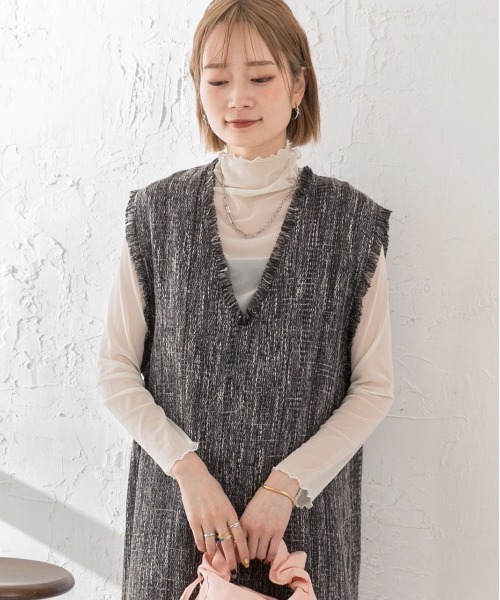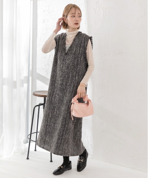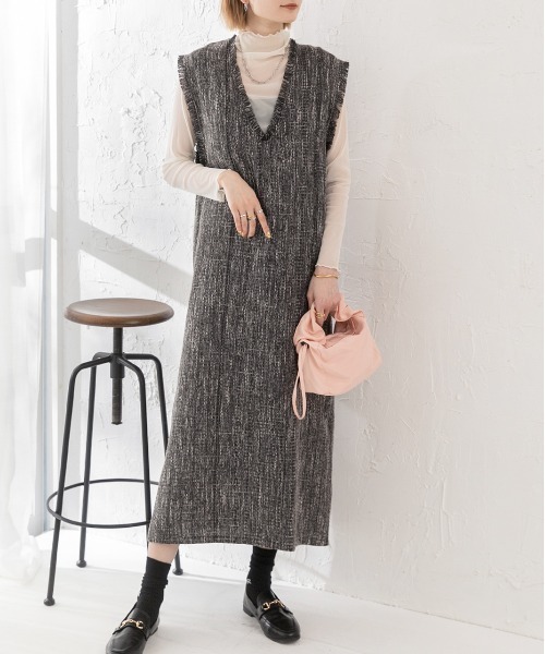 ad thie ワンピース ツイード・Vネック ジャンパースカート