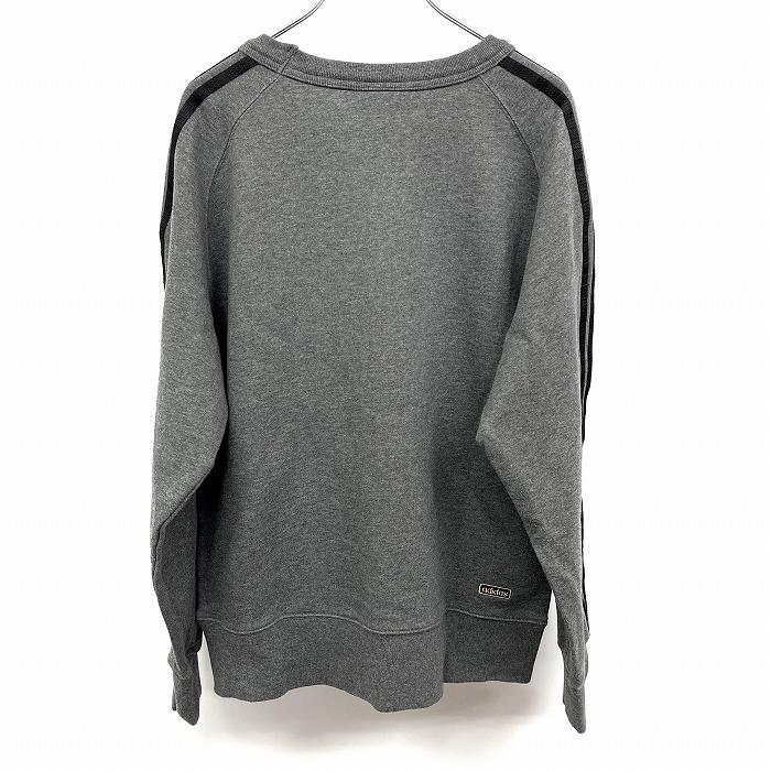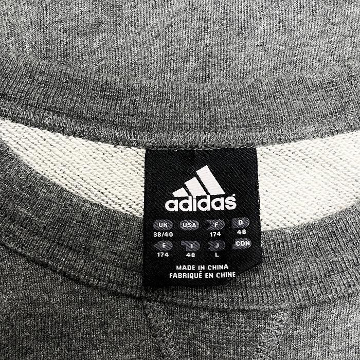 アディダス adidas スウェットシャツ トレーナー 長袖 裏毛 ラグラン ロゴ刺繍 Vガゼット 綿100% L ヘザーグレー 杢グレー×黒 メンズ