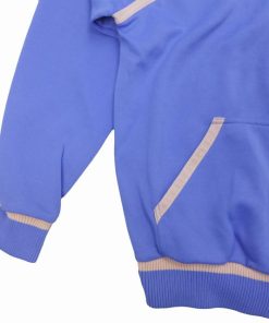 接続部の生地が擦れて摩耗しやすい箇所に補強を施し、ネック、ショルダー、袖口及びポケット上の切り返しラインをトレフォイルロゴと色を統一する事でデザイン全体に調和が生まれ、優しく落ち着いた印象になっています。