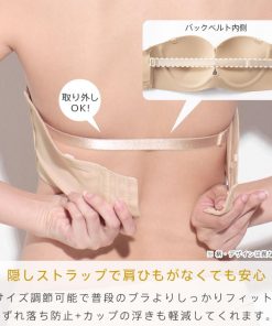 ストラップが外せるタイプのハーフカップ超盛ブラ(R)に、シンプルなリブ素材が登場!チューブトップのようなデザインでインナー感を抑え、すっきりとした印象に仕上げました。こちらのブラジャーはバックベルトの下に補助ストラップをプラスすることで、カップの浮きやズレを軽減。脇高ボーン入りで、脇のお肉をしっかり集めてサイドスッキリ効果が得られます。また、ふっくら立体カップがバストをグンと寄せ上げることで、びっくりするほどボリュームUPした谷間をメイク。さらに安定感のある幅広の4列ホックがバストの脇逃げを防止して、谷間もボリュームもしっかりキープ。ハーフカップタイプだから胸元が大きく開いたトップスでも、ブラのチラ見えを防いでキレイなデコルテに。胸元が開いたトップスや露出が増える夏コーデに欠かせないストラップレスブラは、一枚持っていると便利なアイテム。セットショーツはウエストゴムのW使いがスポーティなハーフバックタイプです。