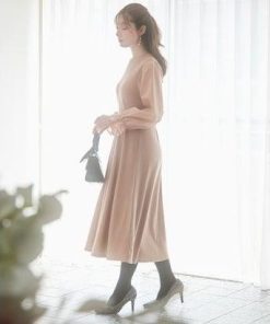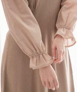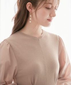 alotta アロッタ Alotta 異素材キャンディー袖ニットワンピース (ベージュ)