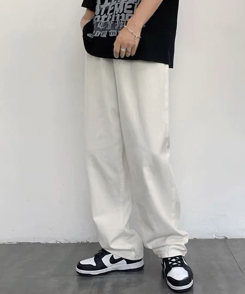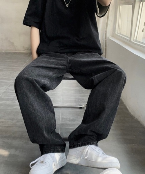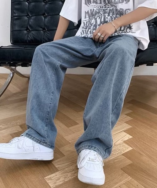キーワード:ジーンズ メンズ レディース ストレート フルレングス レギュラー ワイドパンツ 無地 WEB限定 スケーター ストリート デート ドライブ 秋 大人カジュアル 定番 旅行