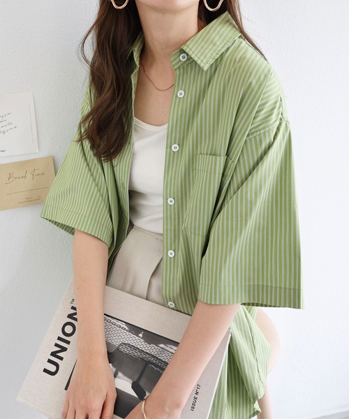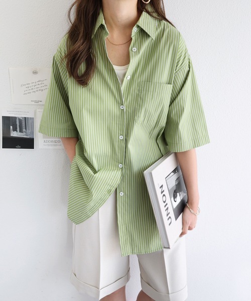 参考商品名:ストライプ半袖カラーシャツ