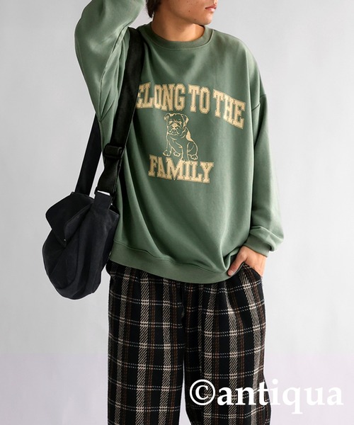 antiqua 「antiqua」 「tree cafe」スウェットカットソー FREE グリーン系その他 レディース