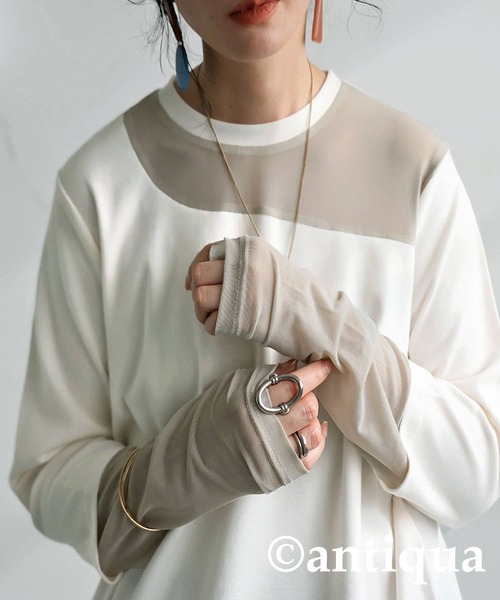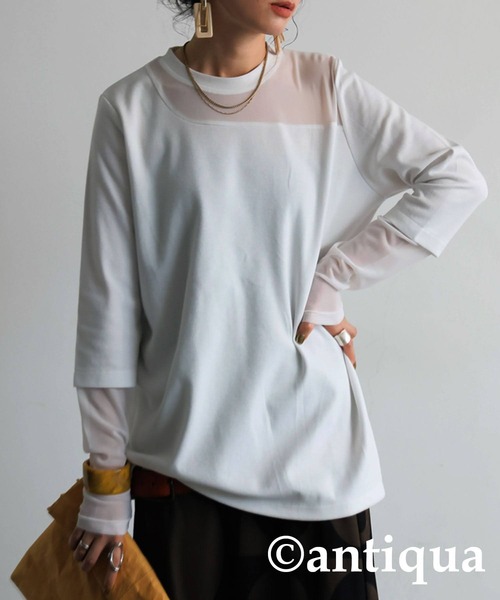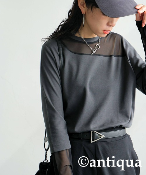antiqua tシャツ シアー切り替えトップス レディース
