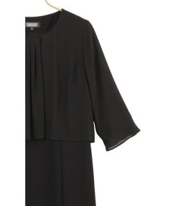 【ジャケット】、ノーカラー、1ボタン、リターンカフス、【ワンピース】、シフォンブラウスワンピース、前開きファスナー