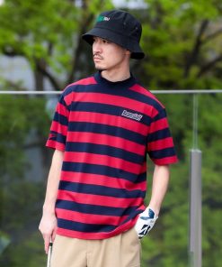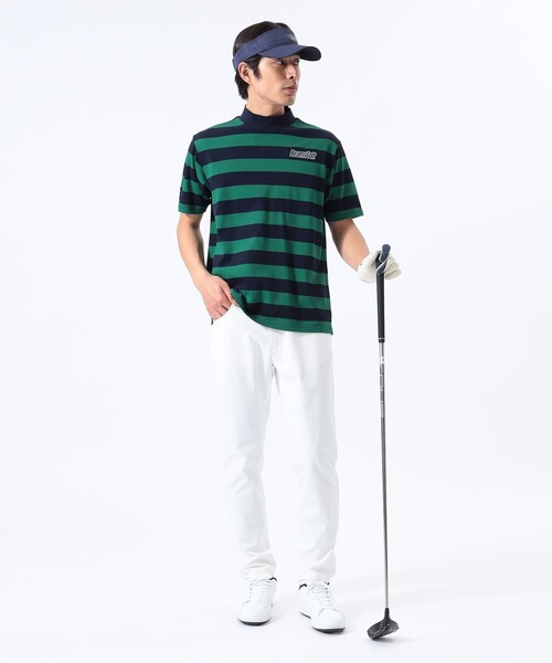 BEAMS GOLF tシャツ 「吸水速乾」ORANGE LABEL / 鹿の子 ボーダー モックネックシャツ メンズ