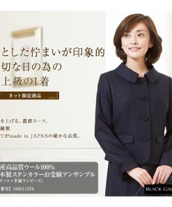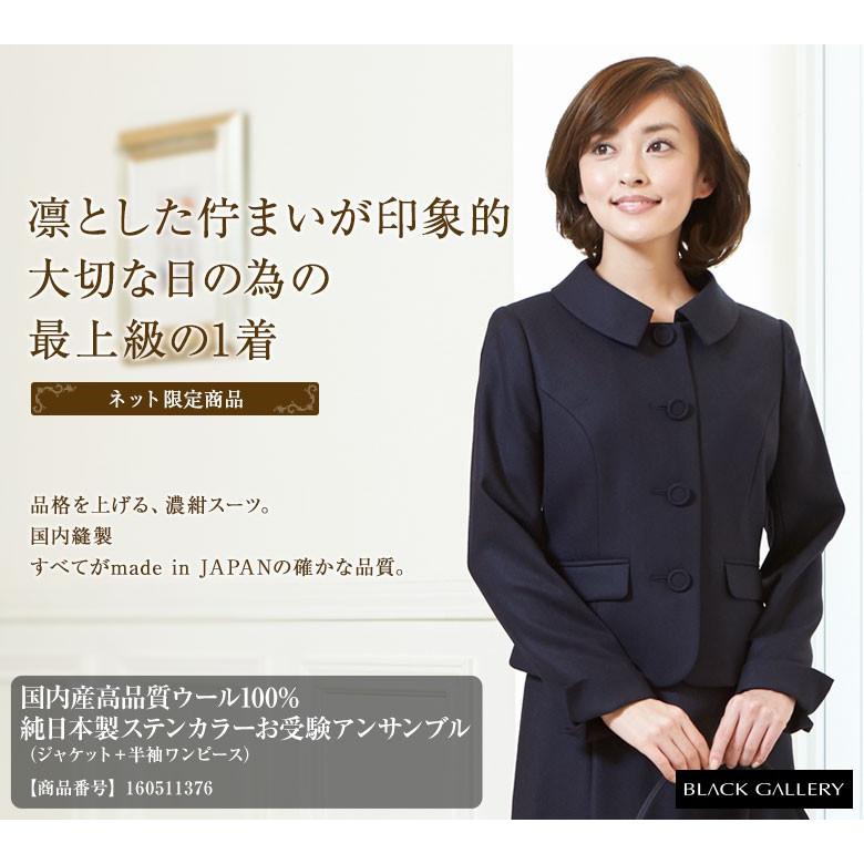 BLACK GALLERY お受験スーツ レディース 大きいサイズ 面接 紺スーツ 国内産高品質ウール100% 純日本製ステンカラーお受験アンサンブル(160511376)