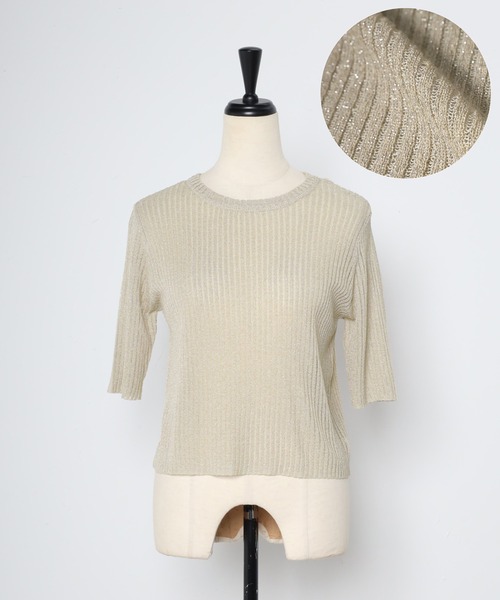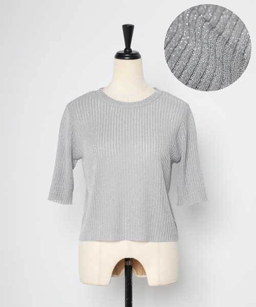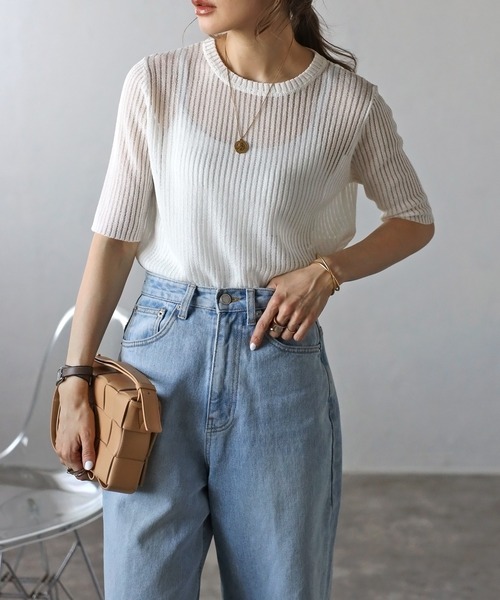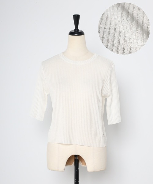 キーワード:ニット セーター レディース クルーネック ショート丈 七分袖 五分袖 無地