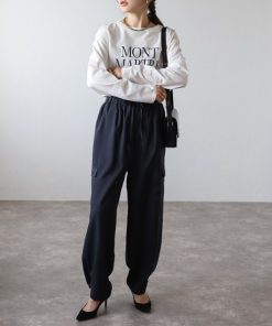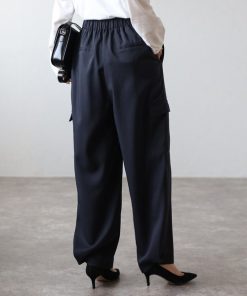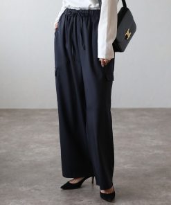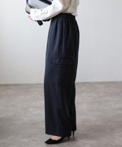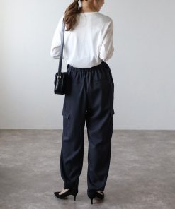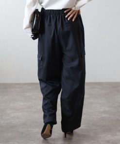 キーワード:カーゴパンツ レディース ウエストゴム ストレート ハイウエスト フルレングス ワイドパンツ 無地