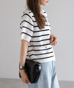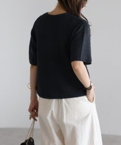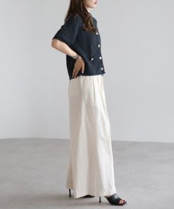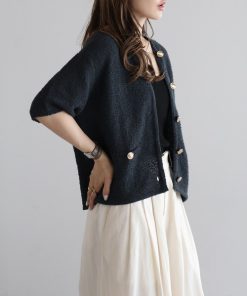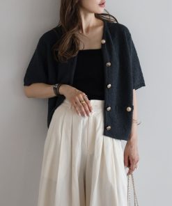 参考商品名:金ボタンブークレニット半袖カーディガン
