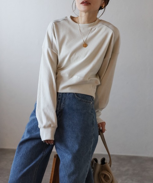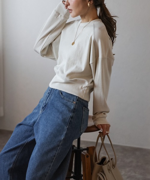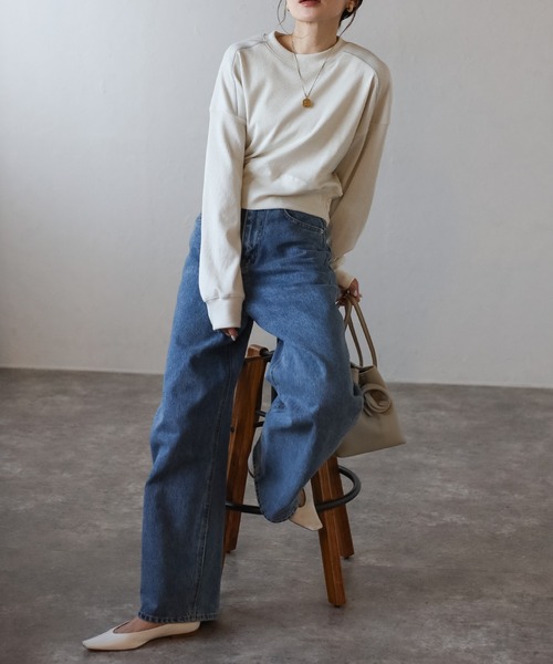 キーワード:トレーナー スウェット レディース 長袖 無地 キレイめ ベーシック 大人カジュアル
