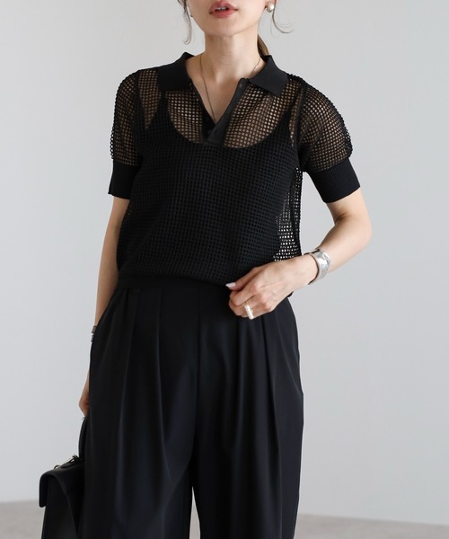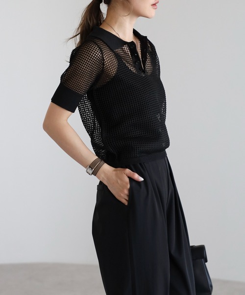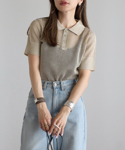 Bonjour Sagan ポロシャツ ポロ メッシュニットポロシャツ レディース