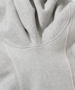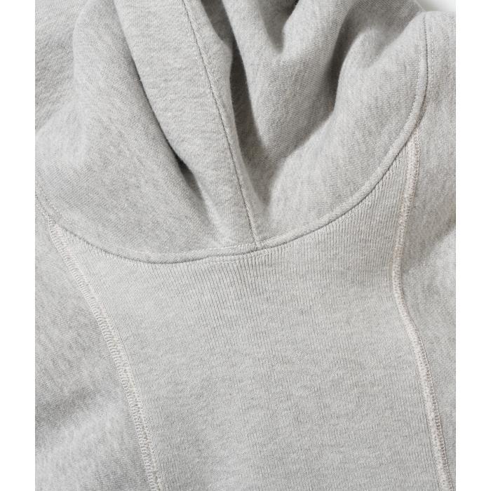 継ぎ目がない肩は着用している時にストレスが掛かることなくス ムースな着心地を誇るが、裁断時において広い作業スペースが必要で、ネック部分をくり抜くなど大掛かりな作業となる。