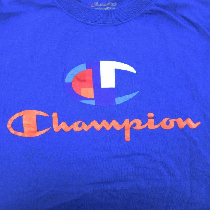 Champion XL/古着 チャンピオン 半袖 ブランド Tシャツ メンズ ビッグロゴ 大きいサイズ クルーネック 青 ブルー 24jul08 中