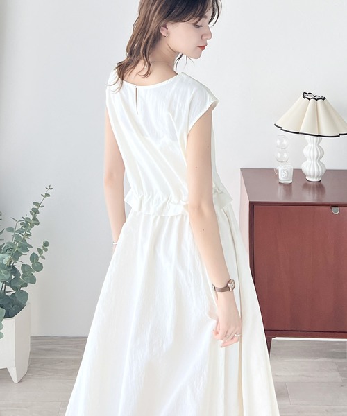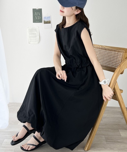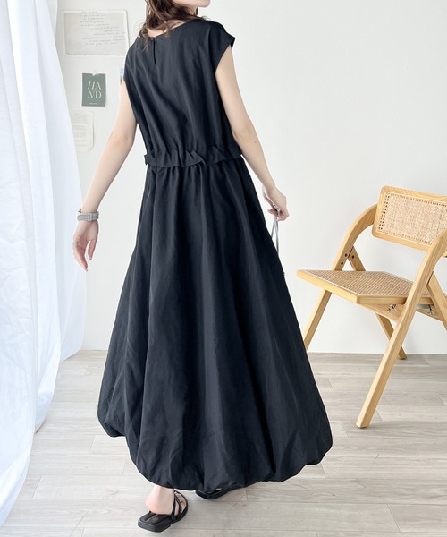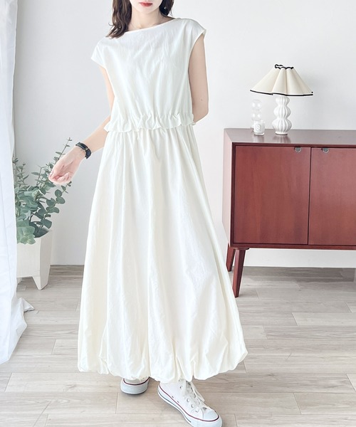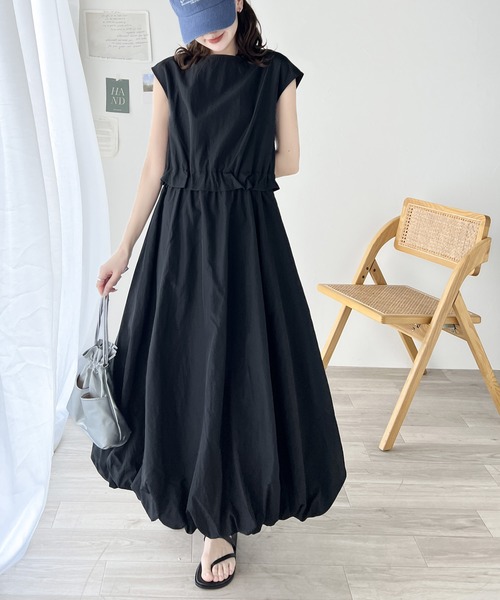 参考商品名:大人可愛いふんわりワンピ。ナイロンフレンチスリーブバルーンロングワンピース