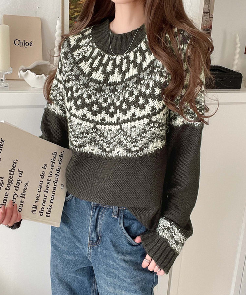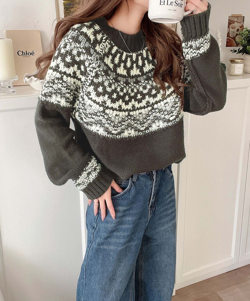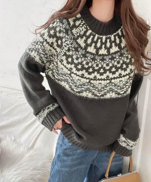 参考商品名:レトロ感が可愛い!ノルディック求心柄ニットセーター(長袖)