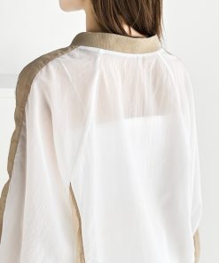 参考商品名:レトロ配色が今っぽ!胸刺繍配色シアー裾ドロストVネック オーバーサイズ プルオーバー