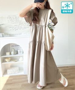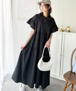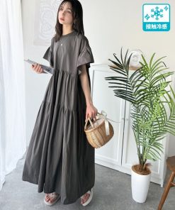 キーワード:ワンピース ティアード フリル ロング 半袖 無地 冷感 WEB限定 おうち リラックス ナチュラル ピクニック レジャー 夏 公園 春 大人カジュアル 定番